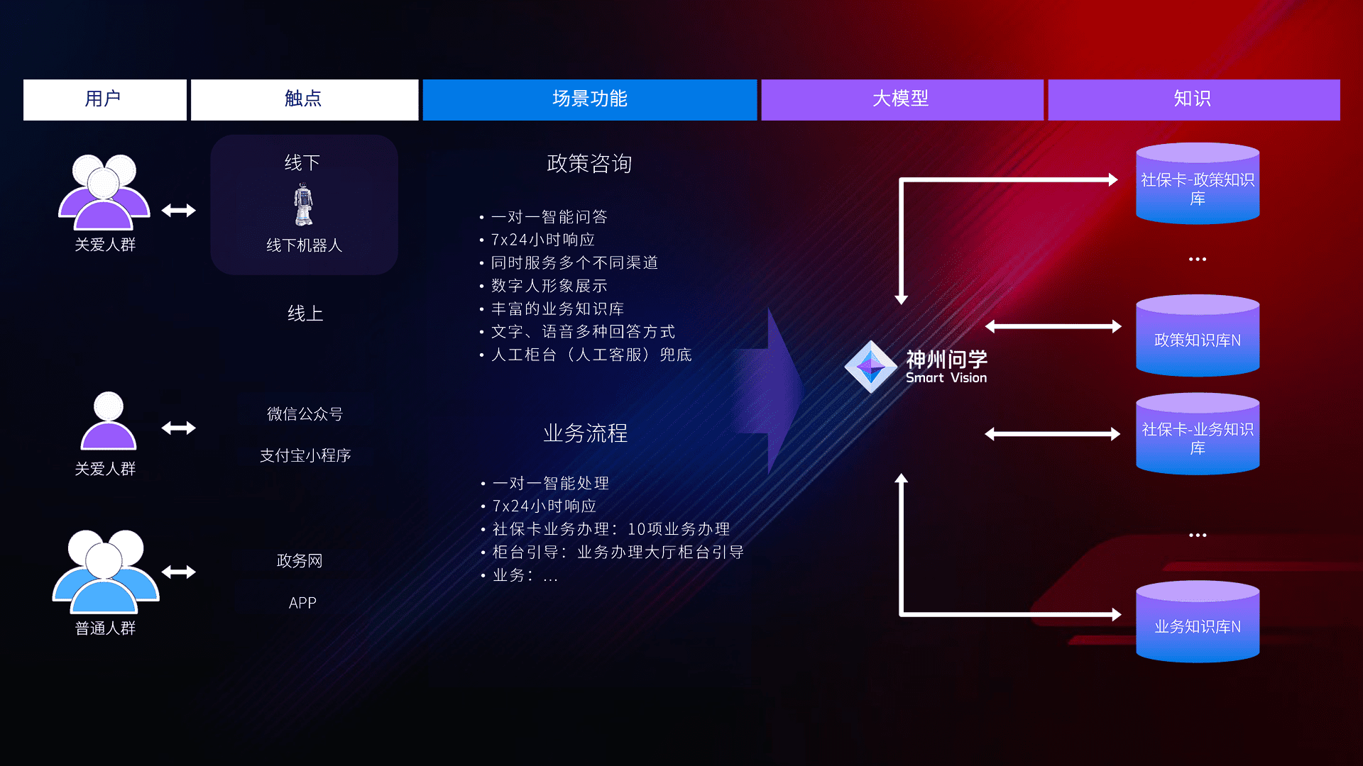 • 线上线下全覆盖:线上提供微信公众号、、、支付宝小程序、、政务网、、、、app多种渠道,,,与线下机器人形成完整服务体系。。。